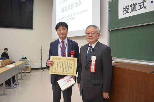 授賞式は、2025年9月23日、2025年度日本海洋学会秋季大会(北海道大学水産学部函館キャンパス)において執り行われ、日本海洋学会の江淵会長より、賞状とメダルが授与されました。
